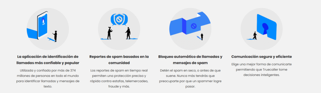 • Identificador de Llamadas: Identifica números desconocidos, spam o empresas que llaman antes de responder.